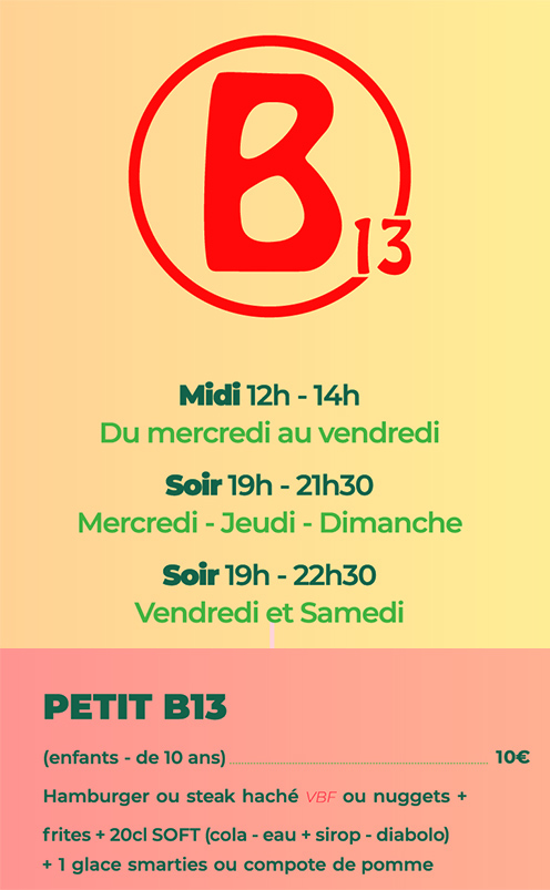- Tarifs valables pour les – de 12 ans, si plus de 12 ans +2€ par formule